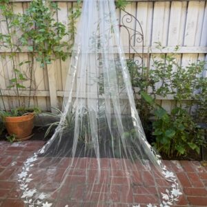 110” (108”) veil of a graduating floral embroidered vine of assorted petals and leaves on a wire comb….