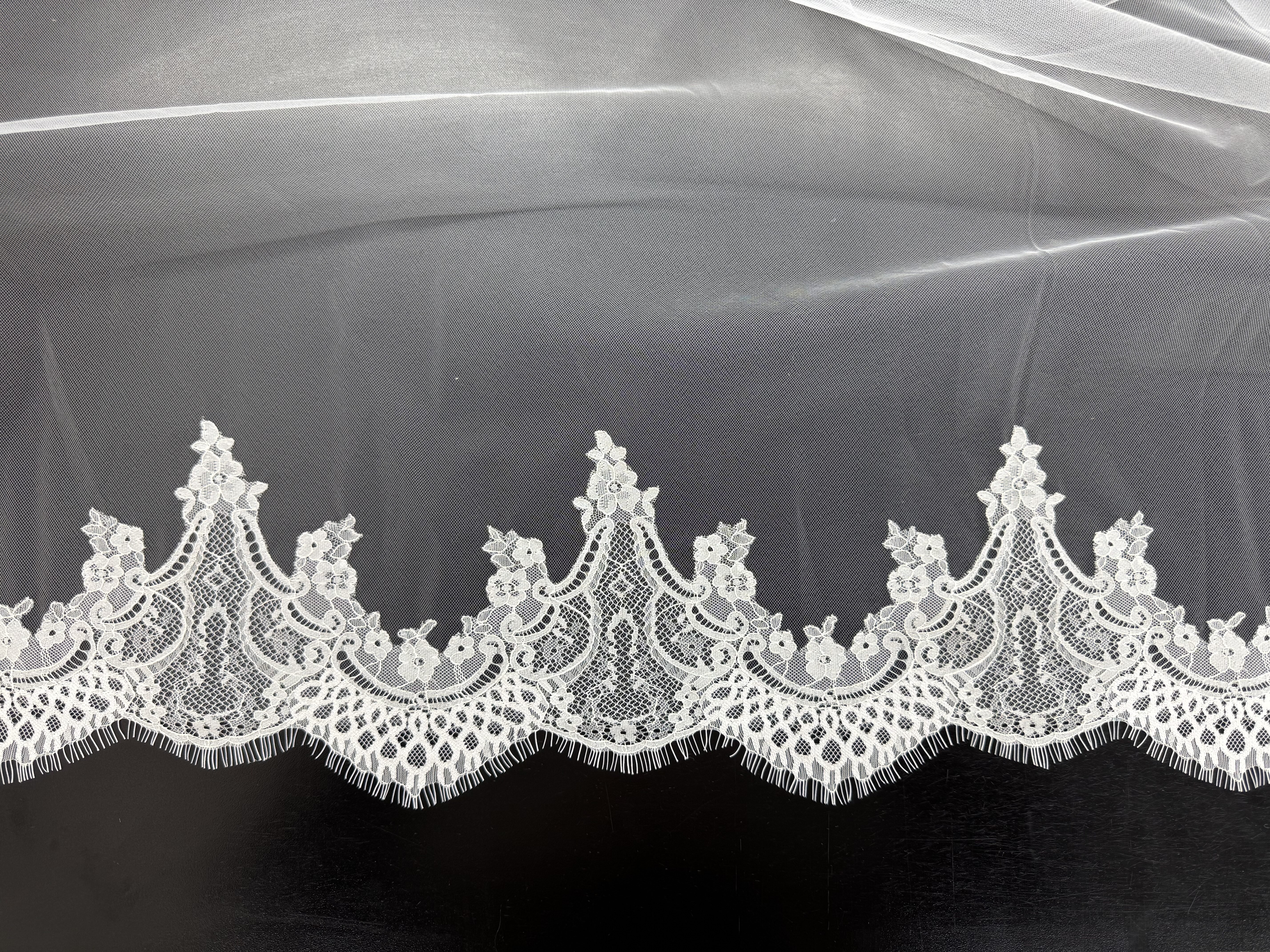 45” (90”) U w/a 6” scallop lace & top 35” cut edge…..